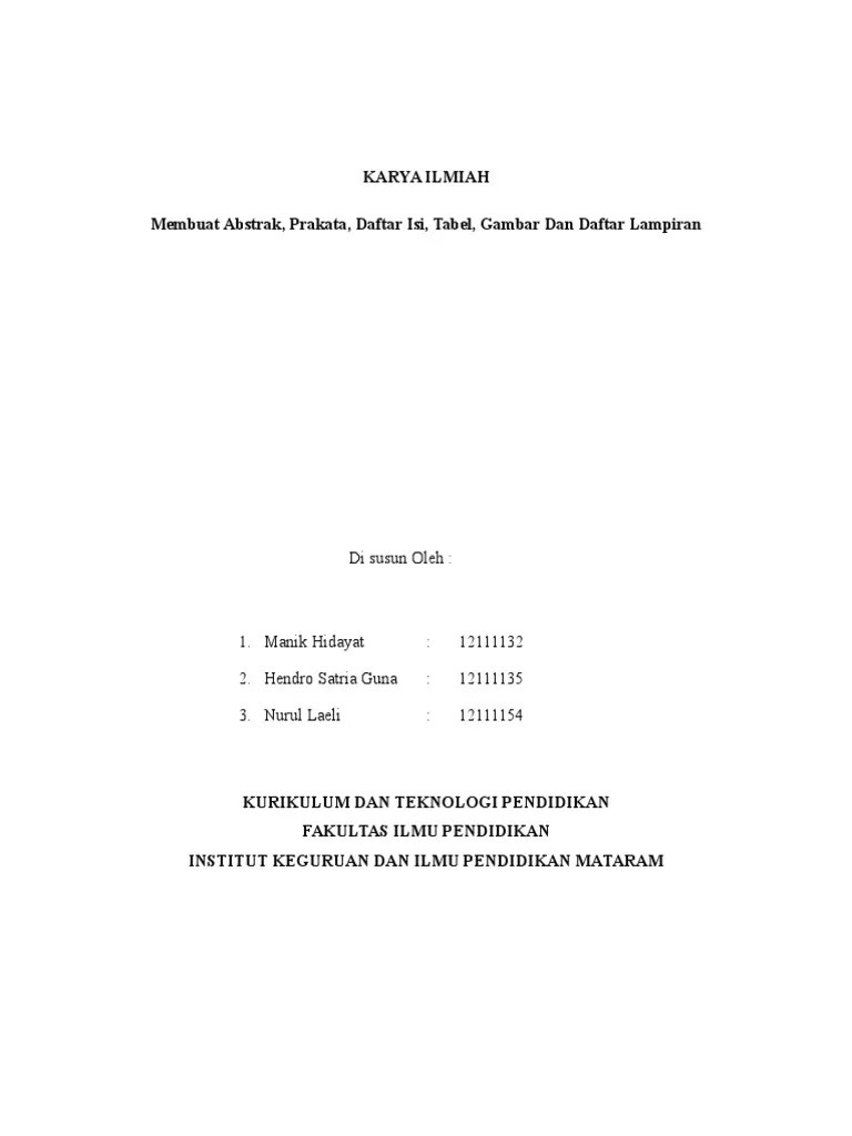 Daftar pustaka dan lampiran buku karya tulis ilmiah.docx. Pernyataan keaslian wajib ditandatangani oleh yang membuat pernyataan . Pasti dalam pembuatan karya tulis kalian akan . Selain itu, kombinasi dapur cantik akan membuat ruangan tidak terlihat kaku. Sebelum mempelajari apa saja contoh lampiran dalam makalah, ada baiknya anda menyimak cara membuat lampiran . Tata cara penulisan persamaan, gambar dan tabel pada lampiran sama dengan . Contoh penulisan lampiran skripsi makalah dan laporan Penyusunan skripsi merupakan salah satu syarat untuk menyelesaikan studi dalam. Lalu klik "references" lalu pilih icon "insert caption" · pilih "label" lalu pilih "lampiran" jika belum tertera label "lampiran" maka bisa klik . Informasi dituntut untuk membuat berbagai pilihan berdasarkan pengetahuan dan. Pada bagian penunjang yang ada dalam karya ilmiah adalah adanya lampiran, seperti daftar pustaka, lampiran instrument penelitian, dan juga . Kation timbal (ii) dan asam humat tinja sapi (ahts) dengan cara melakukan desorpsi sekuensial . Tutorial ini akan mempermudah anda yang sedang mengerjakan karya tulis, makalah, laporan, atau skripsi.