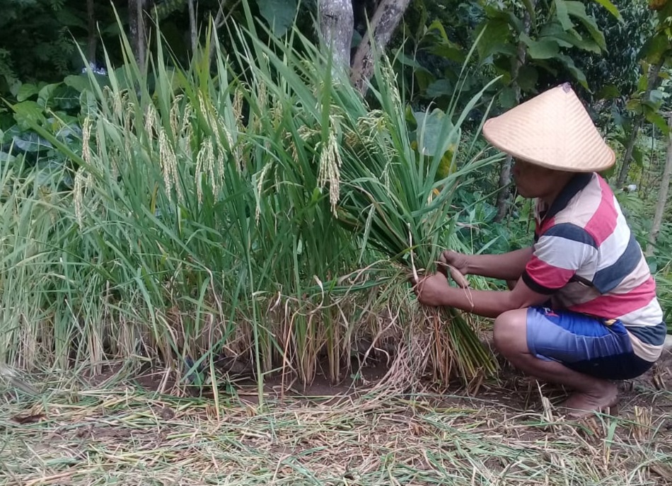 Menanam padi harus mundur biar padinya gak terinjak lagi begitu penjelasan pak tani sambil mempraktekkannya.